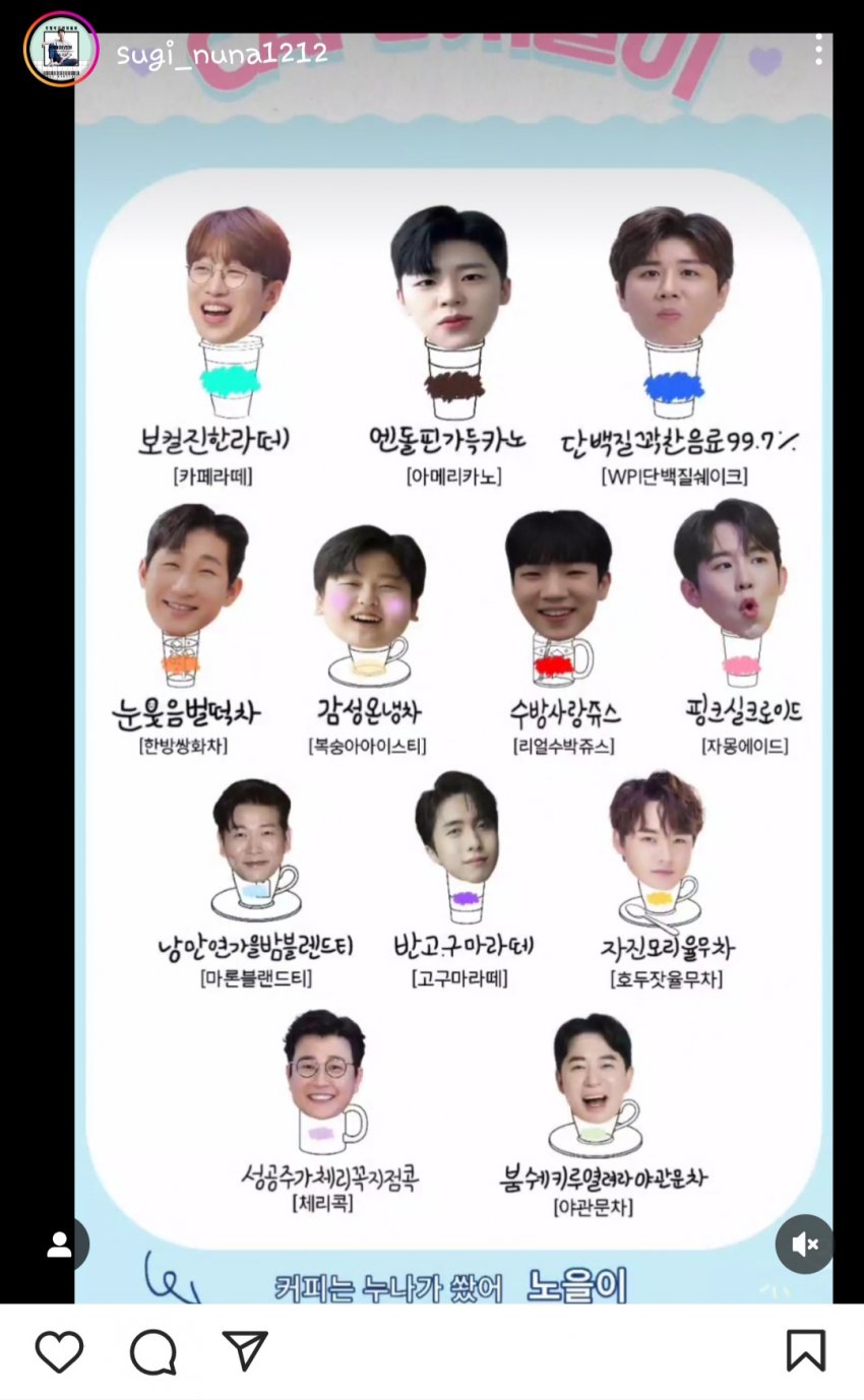 눈웃음벌떡차, 엔돌핀가득카노,단백질꽉찬음료등 재치만점, 센스만점의 멤버별 문구까지 정말 시원하게 웃으며 힘을 얻으셨을 것 같습니다