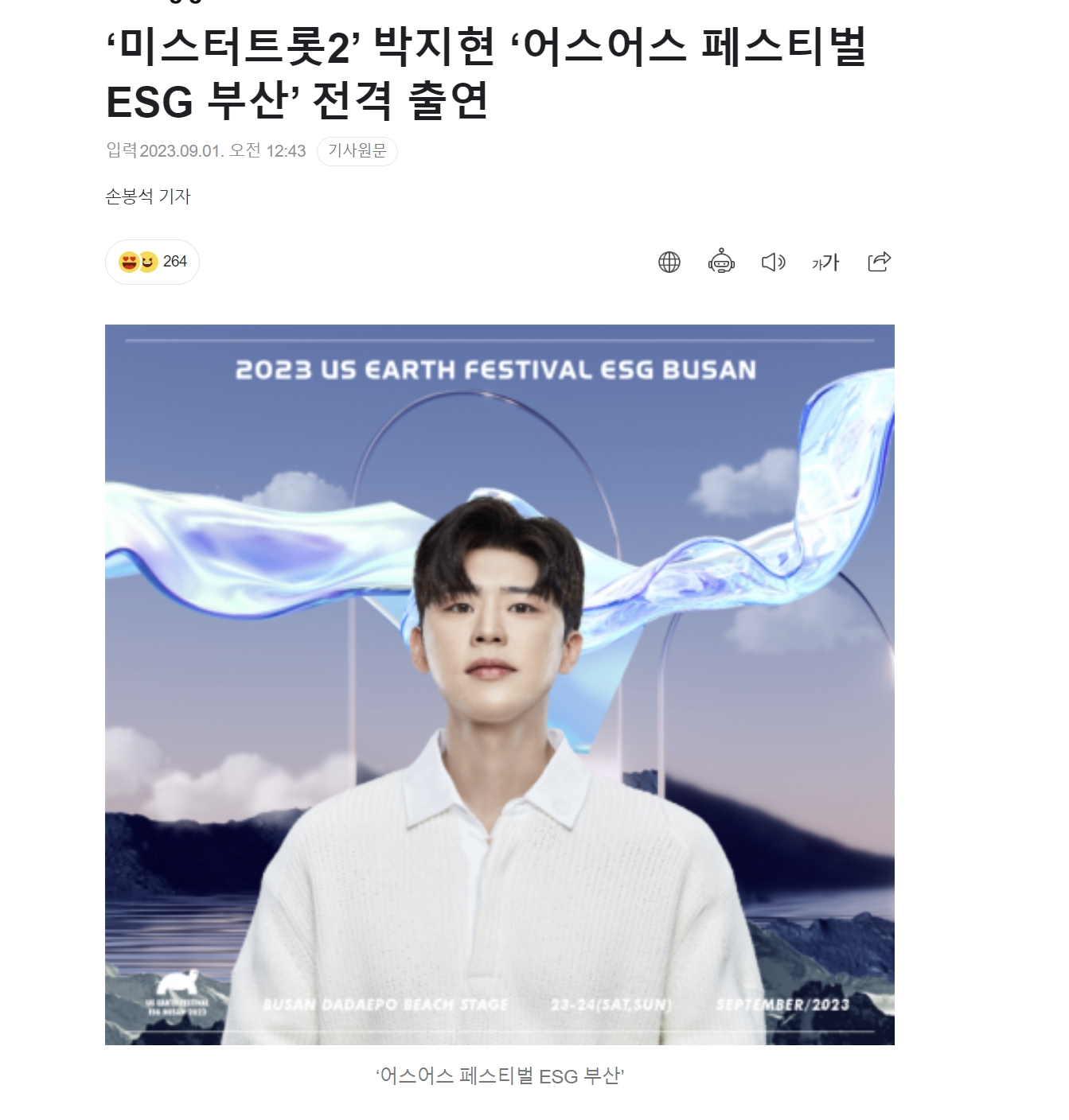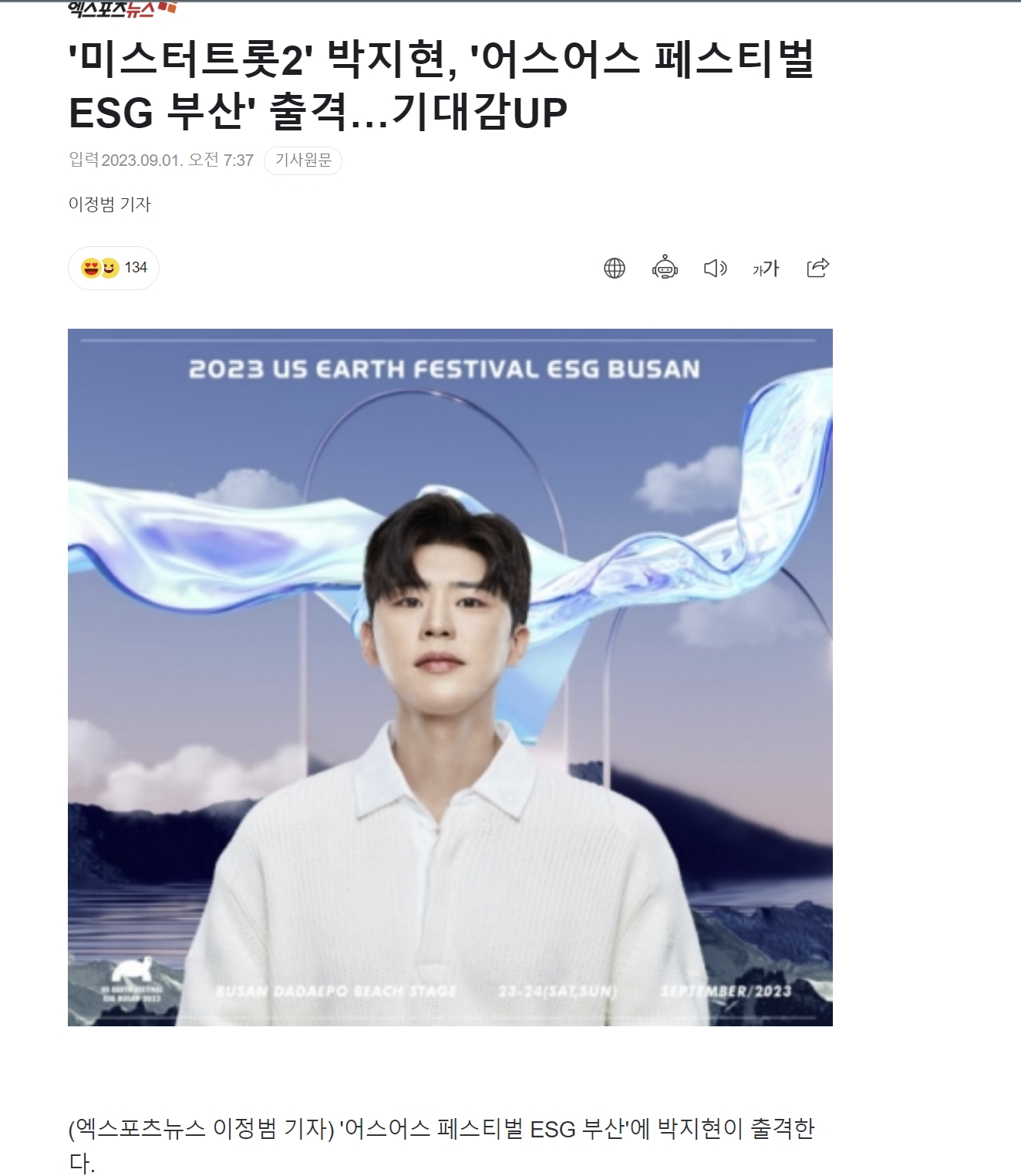 박지현이 9월23일 개막하는 '어스어스 페스티벌 ESG부산'에 참여한다는 기사가 게재됐습니다