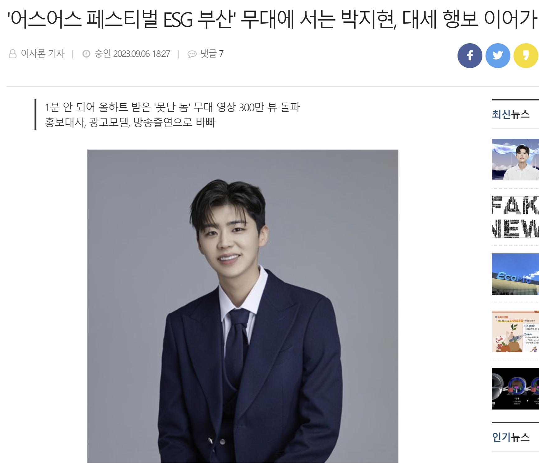 어스어스 페스티벌 ESG부산 무대에 서는 박지현 대세 행보 이어간다는 기사가 게재됐습니다