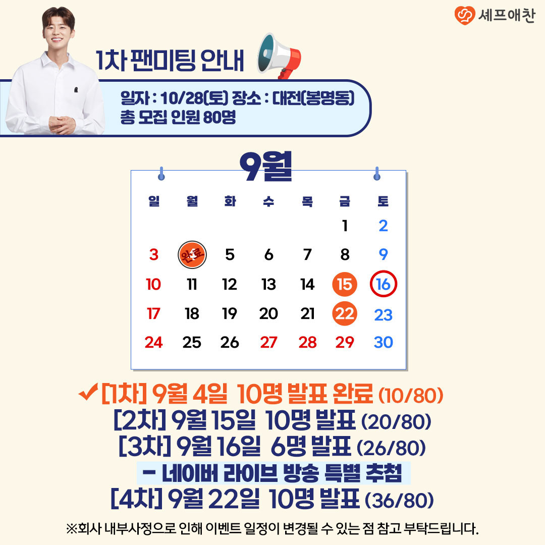 팬미팅 10명 1차발표는 9월4일에 완료했고 앞으로 순차적으로 발표한다고 전했습니다!