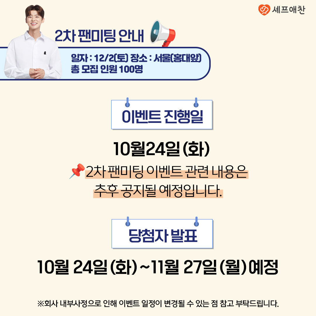 이벤트 진행일은 10월24일 화요일이며 2차 팬미팅 이벤트 관련 내용은 추후 공지될 예정이라고 전했습니다
