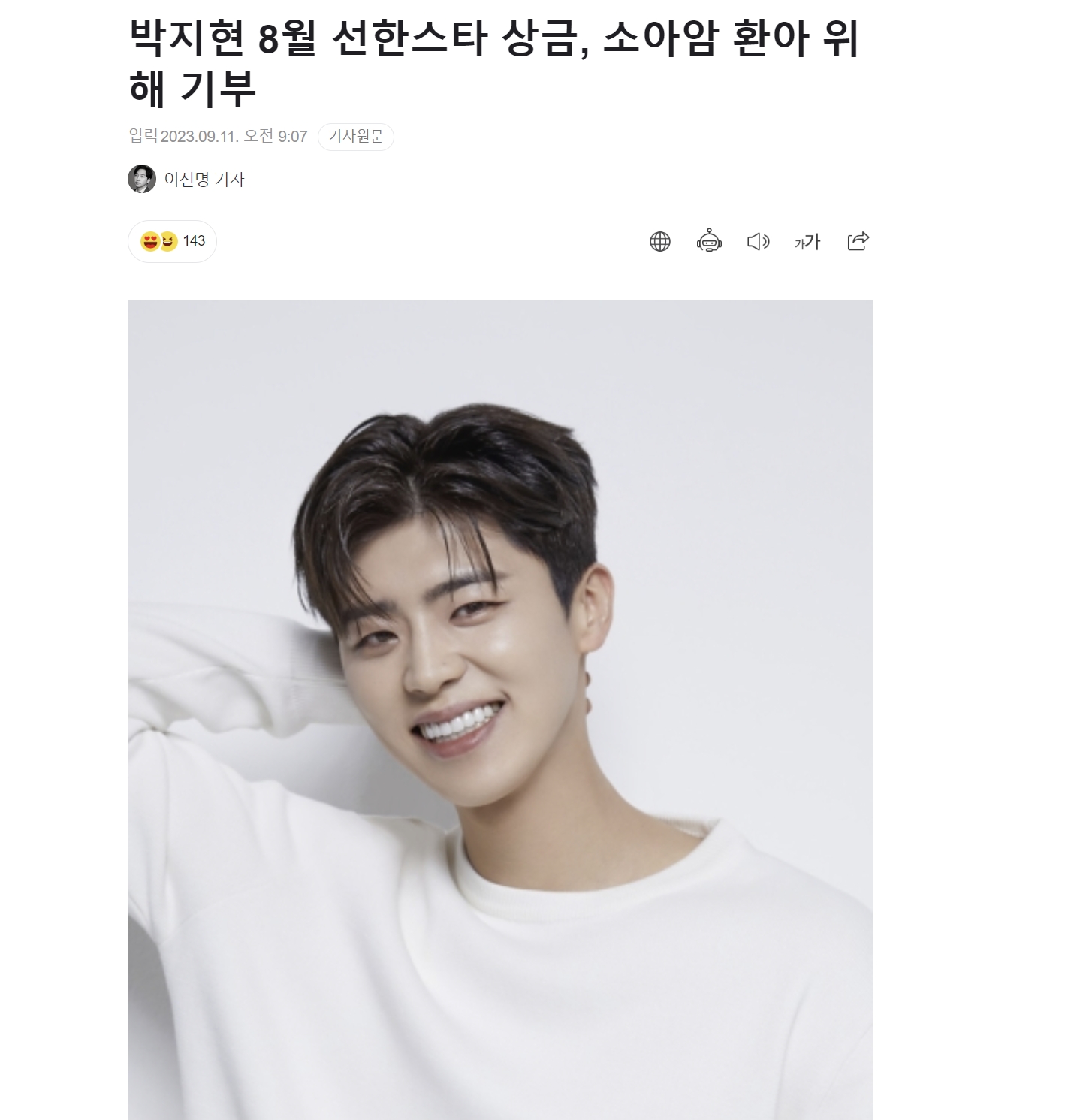박지현이 8월 선한스타 상금 전액을 소아암 환자를 위해 기부했습니다