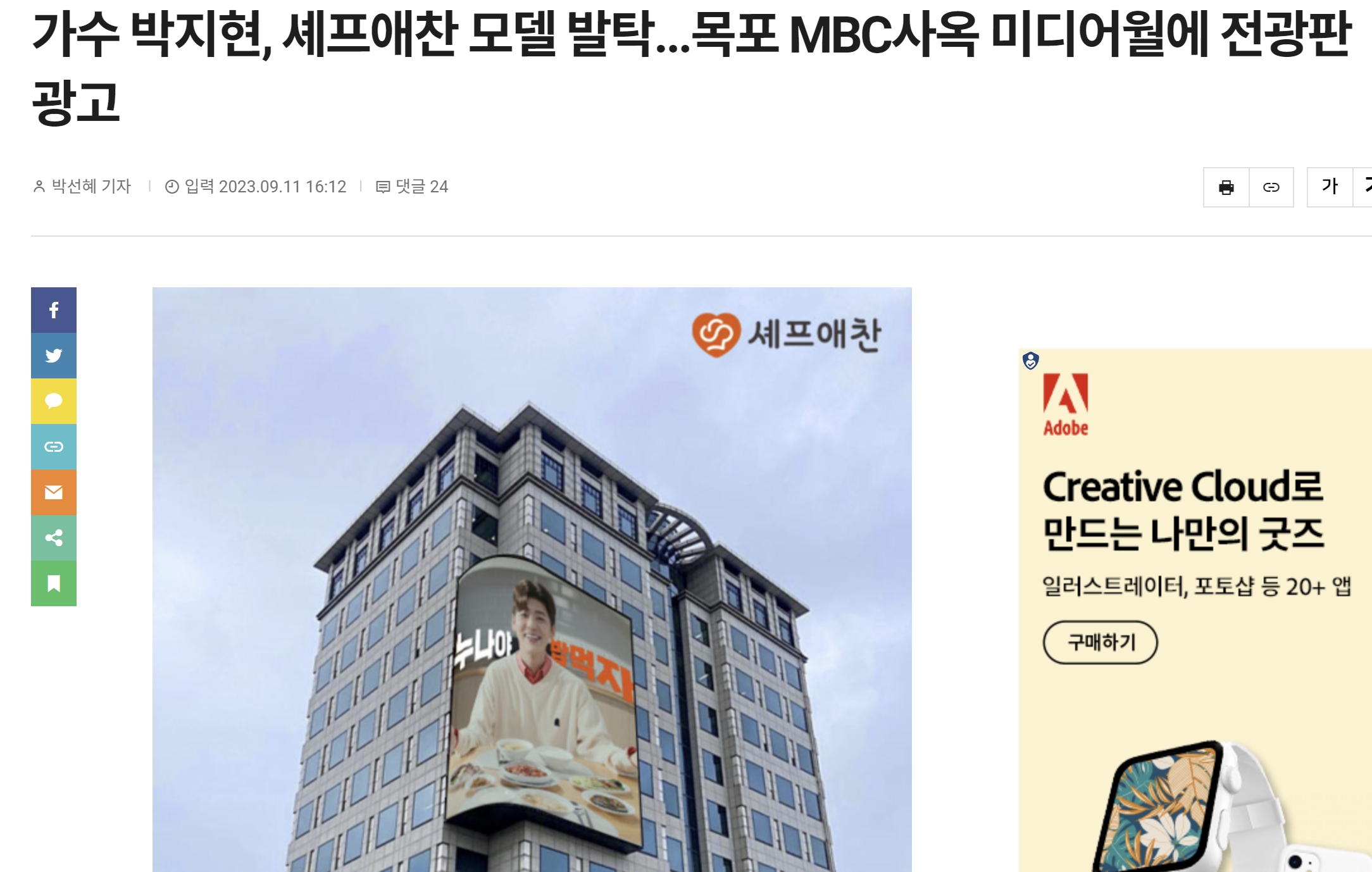 박지현이 목포 mbc사옥 미디어월에 전광판 광고가 송출됐다는 기사가 게재됐습니다