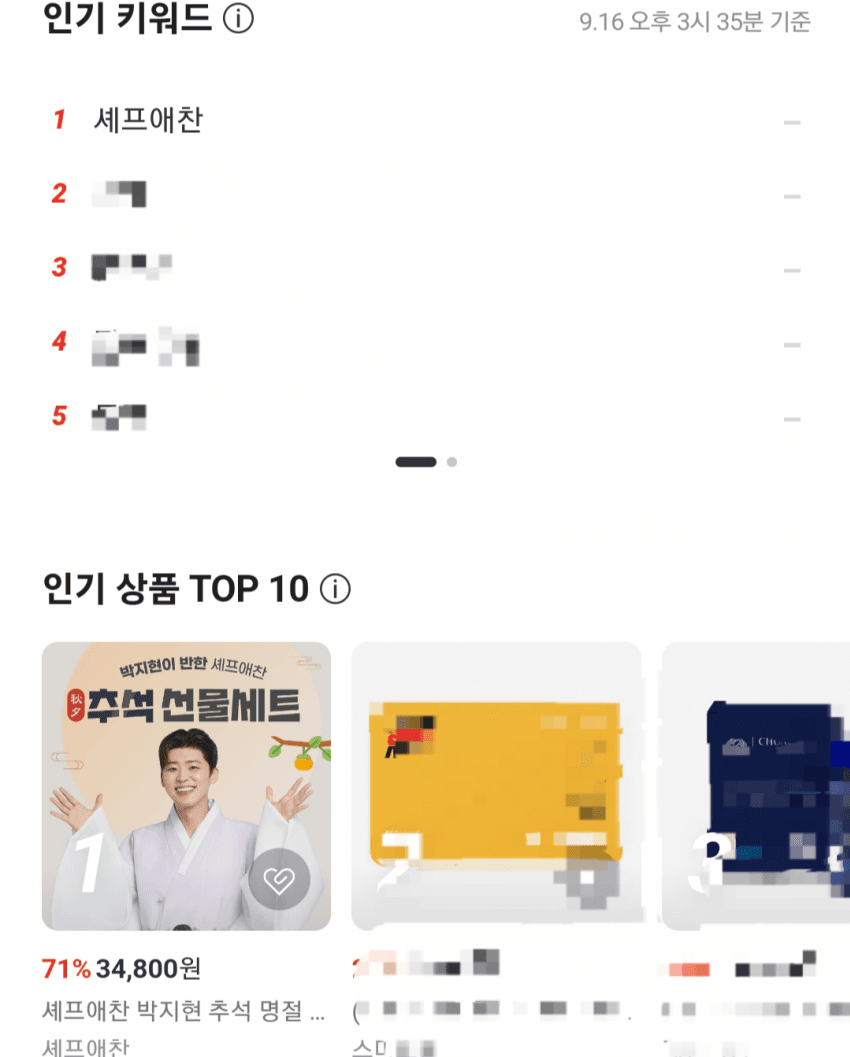 9월16일 오후 3시30분 기준 네이버 인기 키워드에 '셰프애찬'이 1위를 차지했습니다