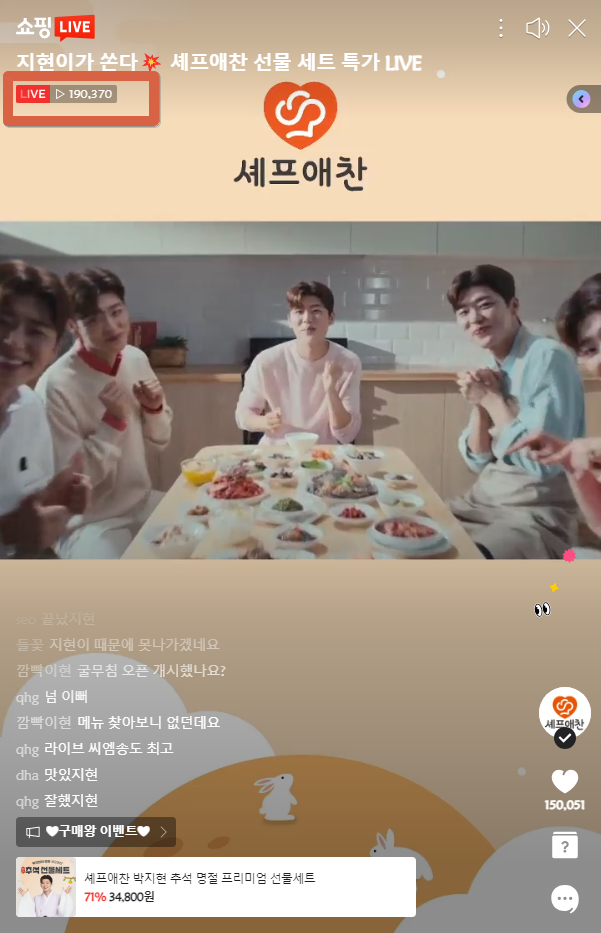 16일 토요일 2시에 열린 셰프애찬 라이브 방송이 20만명 가까이 시청하며 엄청난 인기를 실감케 하기도 했습니다