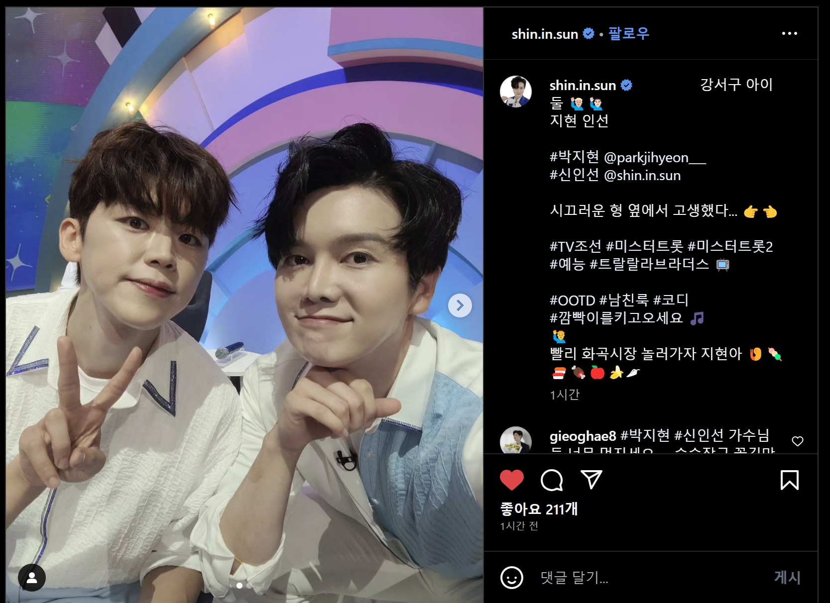 신인선의 인별에 박지현과 함께 찍은 사진을 올려주었습니다