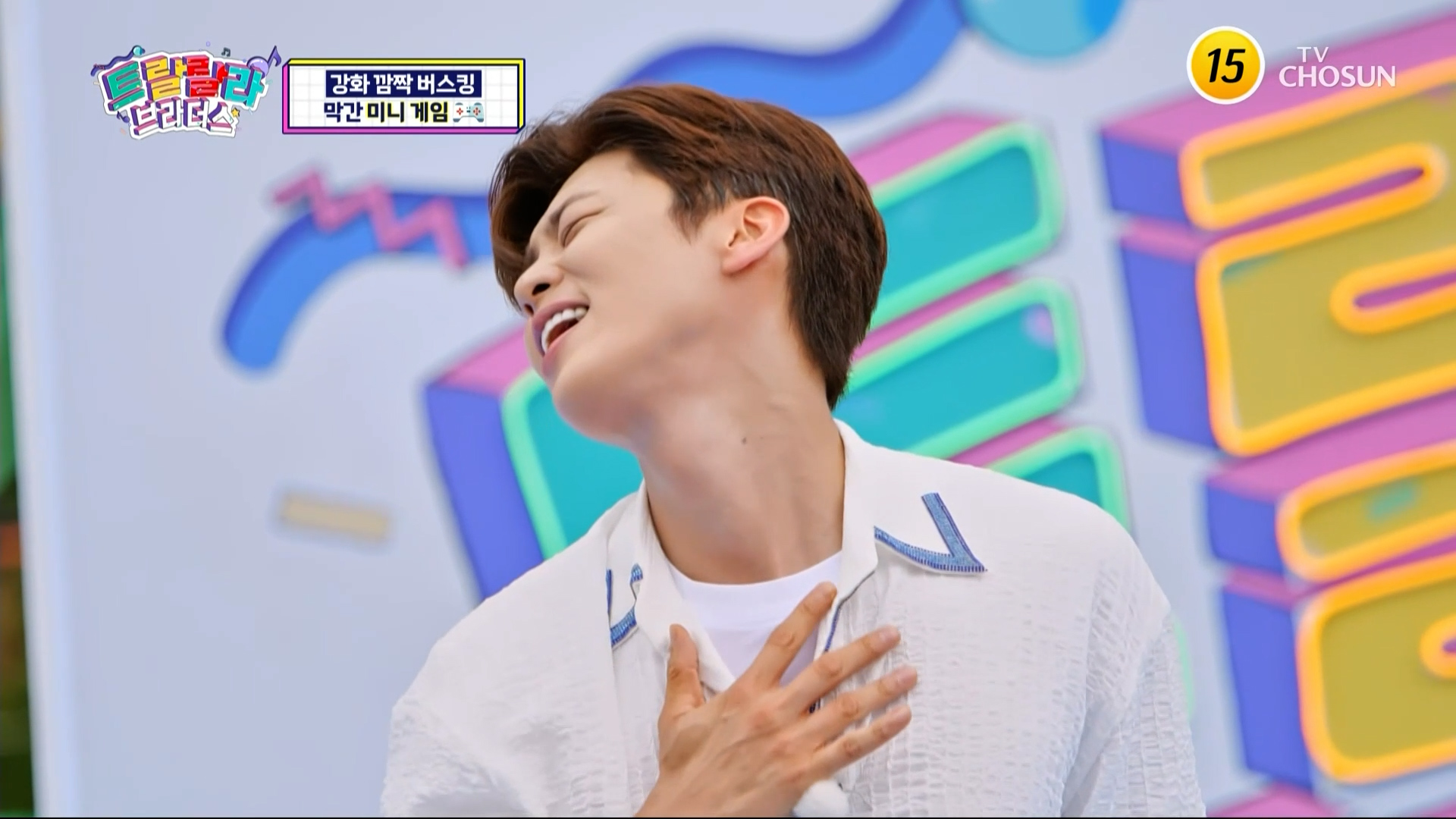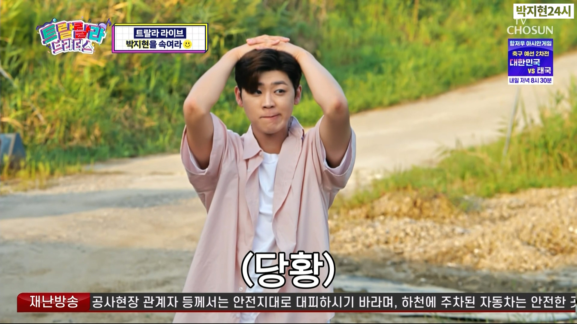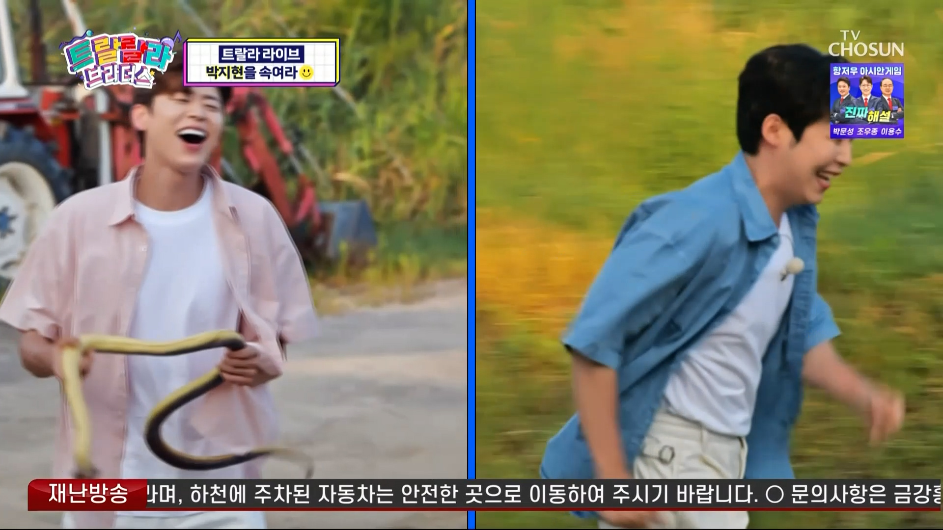 트랄랄라이브 코너에서는 YB멤버들이 장어를 잡으러 갔는데 늦게 합류한 박지현에게 몰래카메라를 합니다 최수호가 뱀에 물린 척하고 쓰러져있는 상황이었는데 당황한 지현님 모습이 정말 맑고 순수해 보였습니다