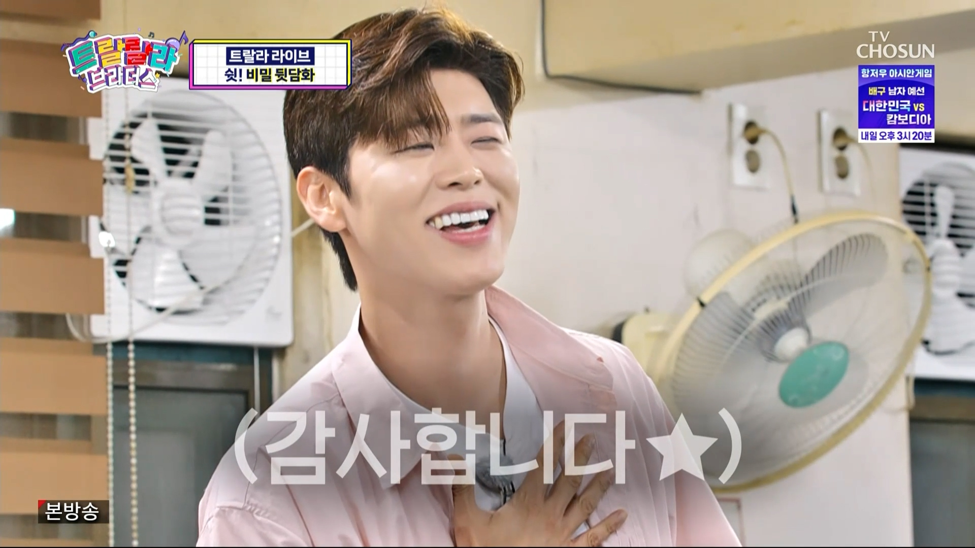 트랄랄라이브 코너에서는 YB멤버들이 장어를 잡으러 갔는데 늦게 합류한 박지현에게 몰래카메라를 합니다 최수호가 뱀에 물린 척하고 쓰러져있는 상황이었는데 당황한 지현님 모습이 정말 맑고 순수해 보였습니다