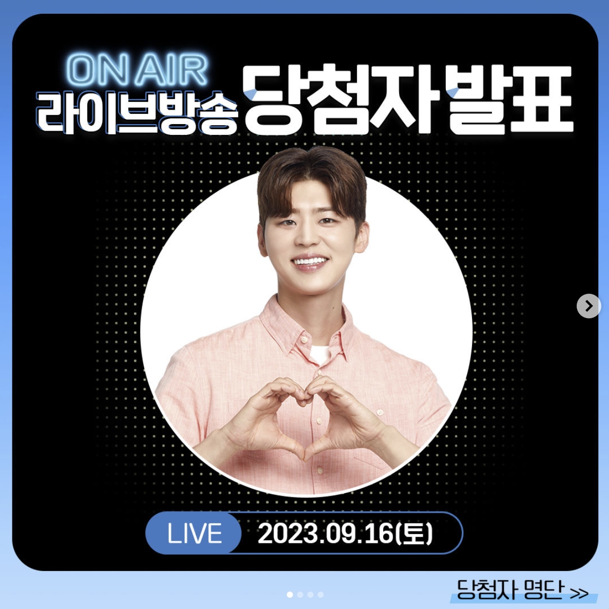 라이브방송은 2023년 9월15일 토요일이며 당첨자 명단은 셰프애찬 공식 홈페이지 공지사항 게시글이나 인스타그램 피드를 통해 확인 하실 수 있습니다