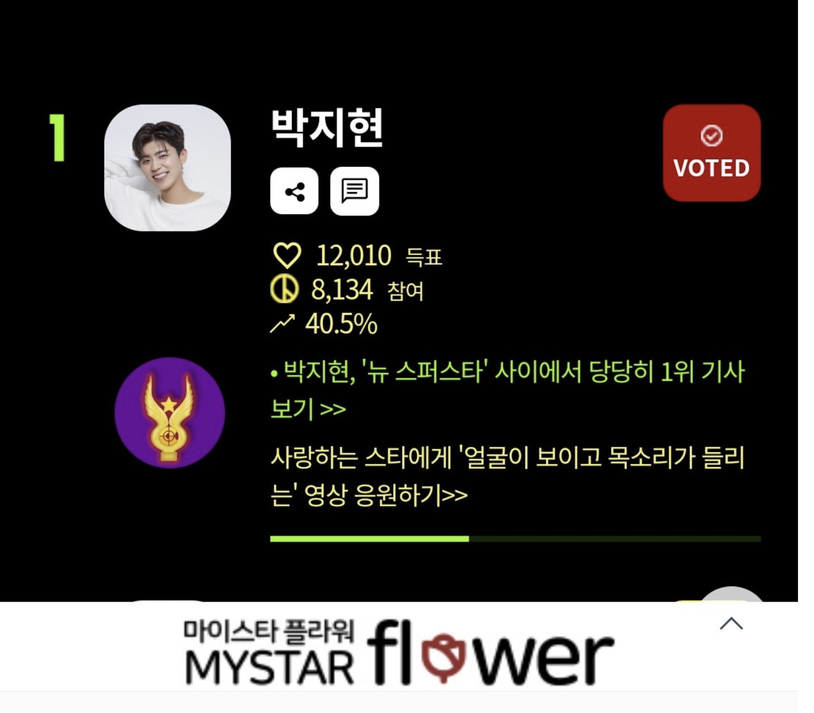 앞으로 남은 기간동안 1위를 굳건히 지켜 박지현님의 수상으로 이어지길 바랍니다