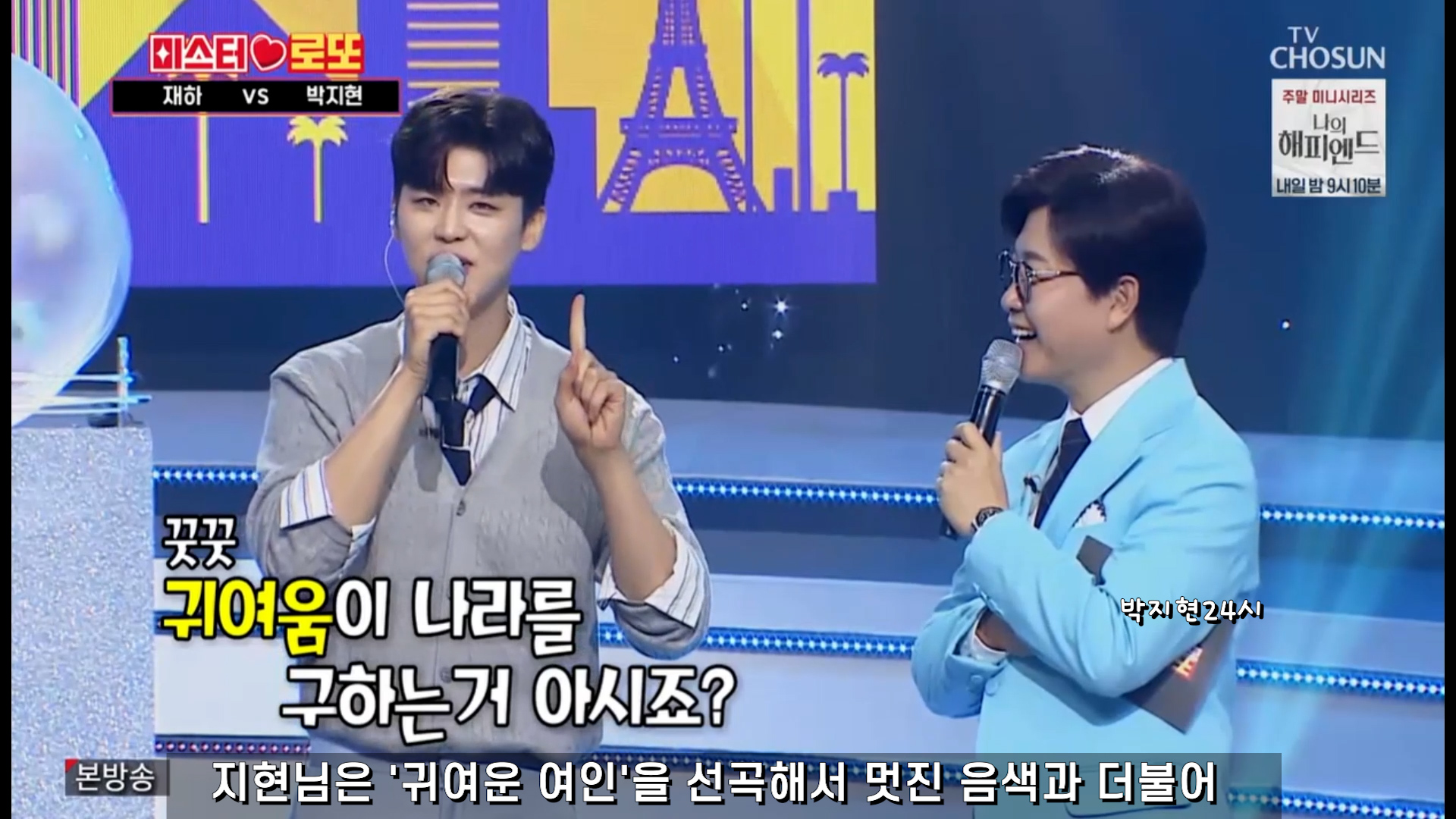 지현님은 '귀여운 여인'을 선곡해서 멋진 음색과 더불어 나라를 구할 정도로 귀여운 지현님의 매력을 한껏 보여줬습니다