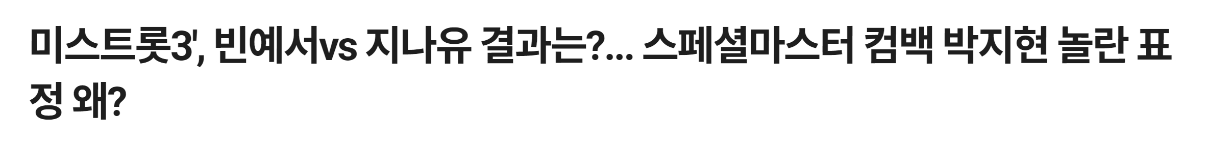 미스트롯3 빈예서와 지나유 데스매치 결과에 스페셜 마스터로 돌아온 박지현님의 놀란 표정에 이목이 집중되고 있습니다