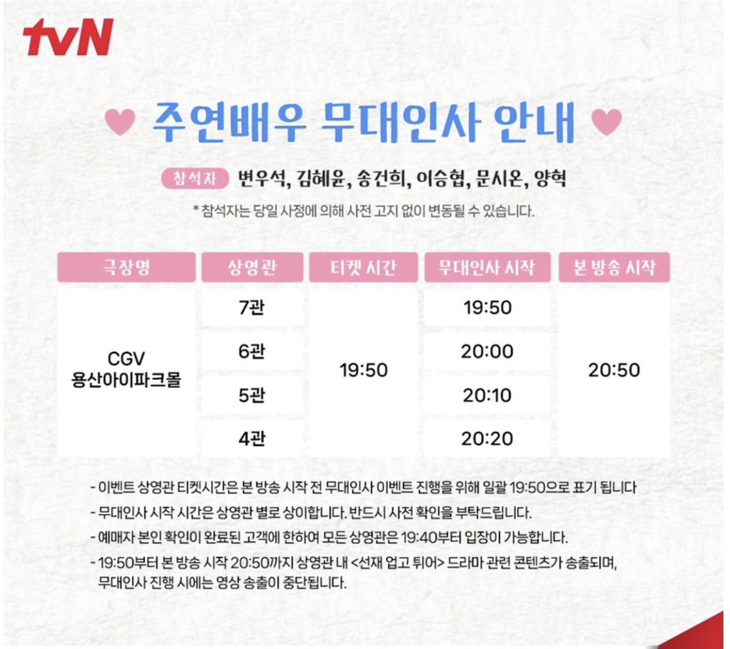 또한 주연배우들의 무대인사를 비롯해 드라마 관련 콘텐츠를 방송시작 전까지 송출해준다고 하니 '선재 업고 튀어'팬들에게는 너무 소중한 추억이 될 것 같습니다