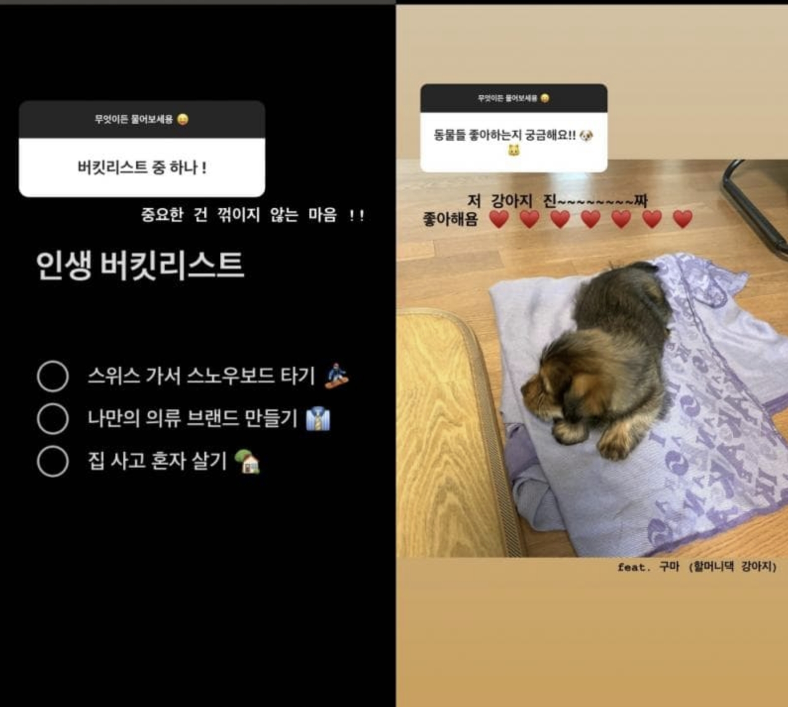 Q 동물들 좋아하는지 궁금해욤