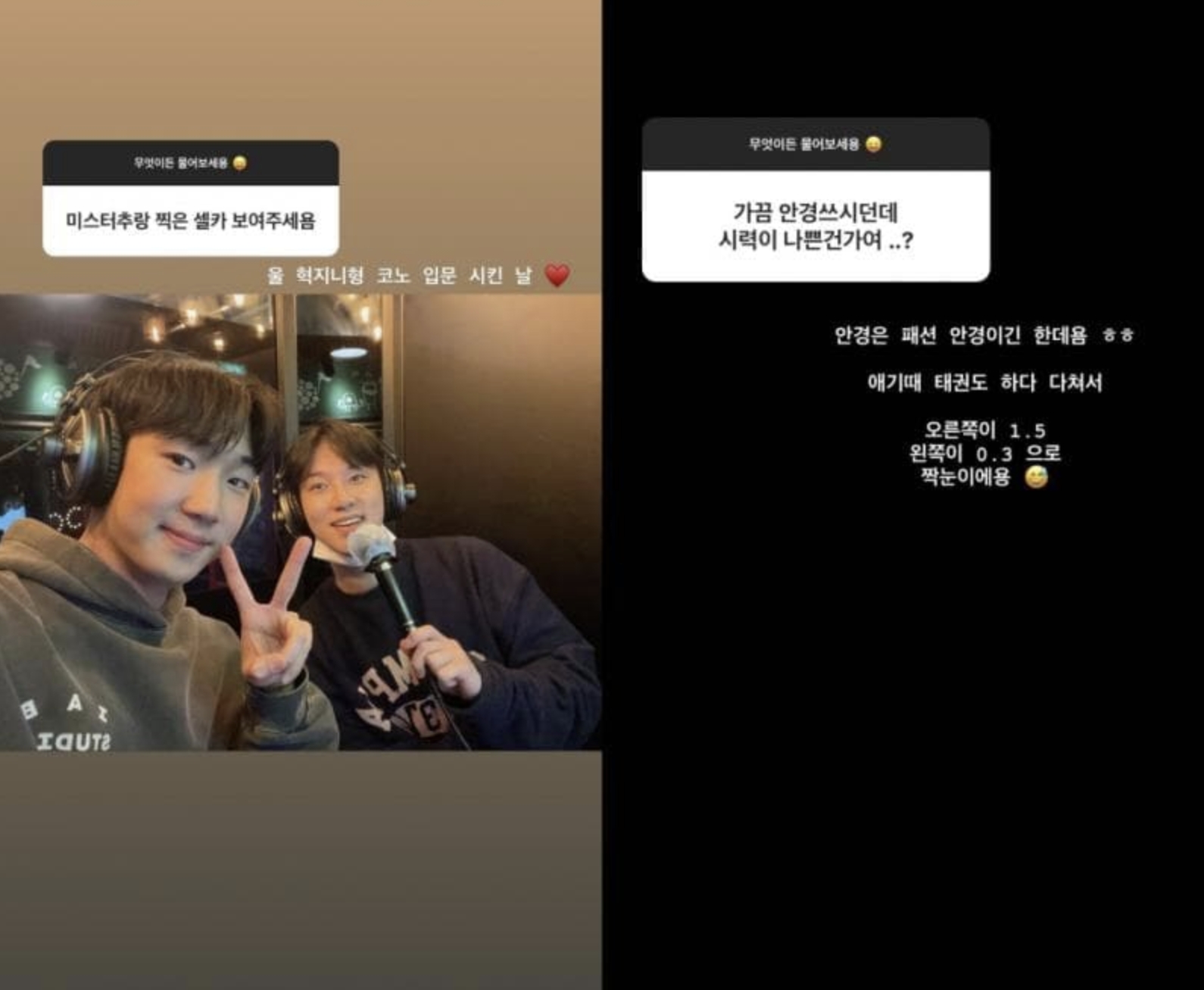 Q 가끔 안경 쓰시던데 시력이 나쁜건가요?