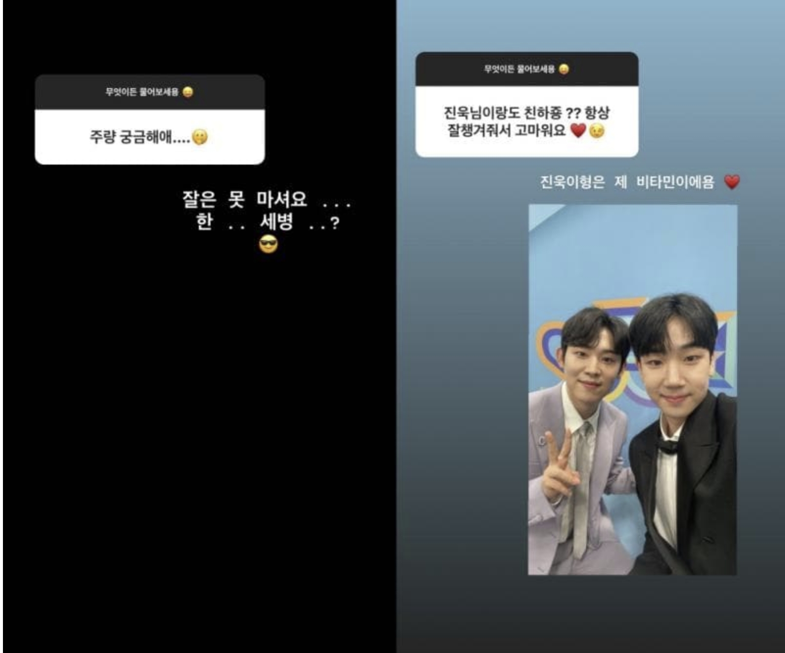 Q 진욱이랑도 친하죠? 항상 챙겨줘서 고마워요