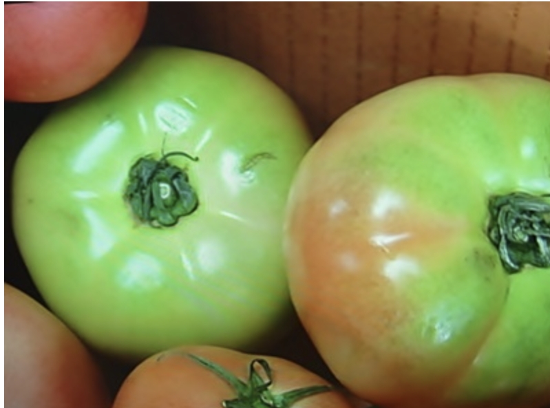 토마토 꼭지에는 에탈렌 가스가 나오는데 그것이 숙성을 빨리 되게 만든다고 합니다.