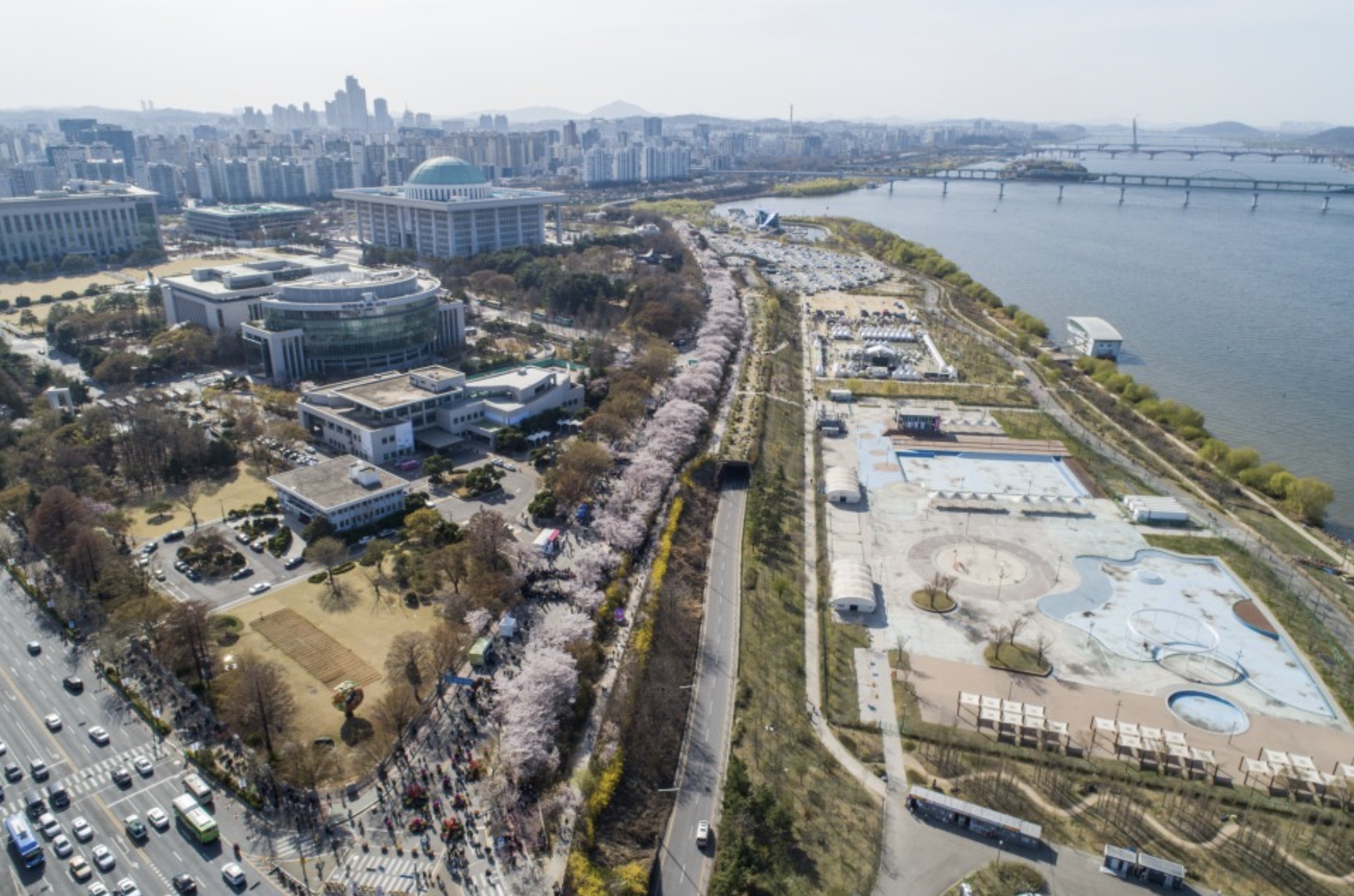 여의도 국회 뒤편에 1.7km의 벚꽃 길이 펼쳐지며 축제 기간 동안은 차량이 통제되어서 여유롭게 벚꽃 축제를 즐길 수 있을 것으로 예상됩니다.