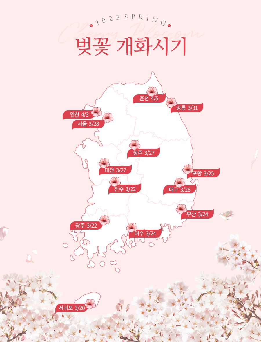 2023년 3월 전국적으로 고온 현상 때문에 벚꽃의 개화시기가 약 일주일 정도 당겨졌다고 합니다.