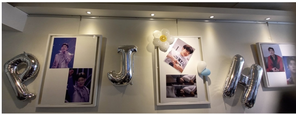 그 안에 박지현님의 사진들과 장식들이 예쁘게 잘 꾸며져 있는 모습입니다 카페엔 엄청 많은 엔돌핀 팬분들이 방문하셔서 즐거운 추억 많이 남기셨다는 후기입니다