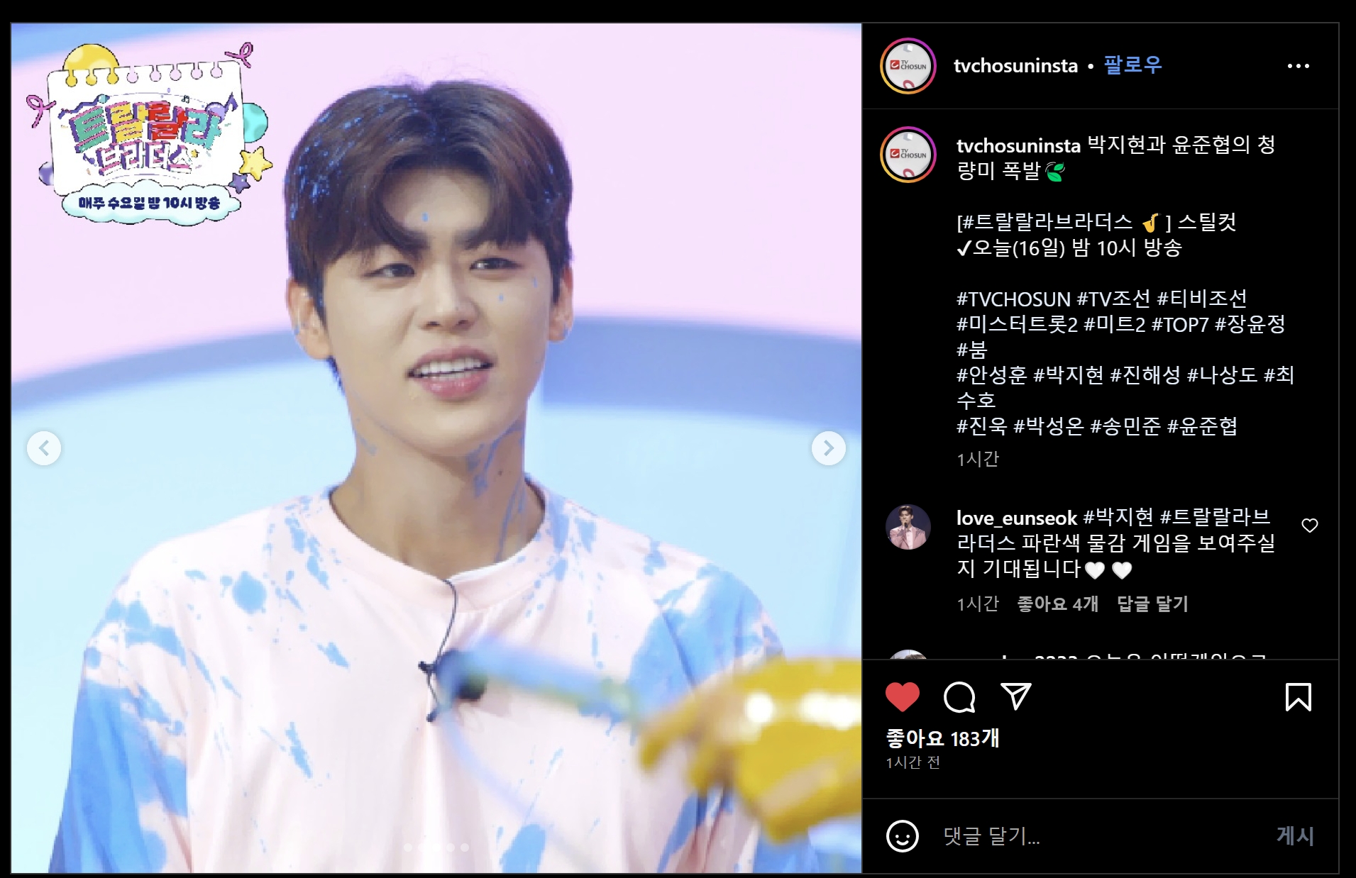 트랄랄라 브라더스에서 청량미 폭발하는 사진을 올려주었습니다