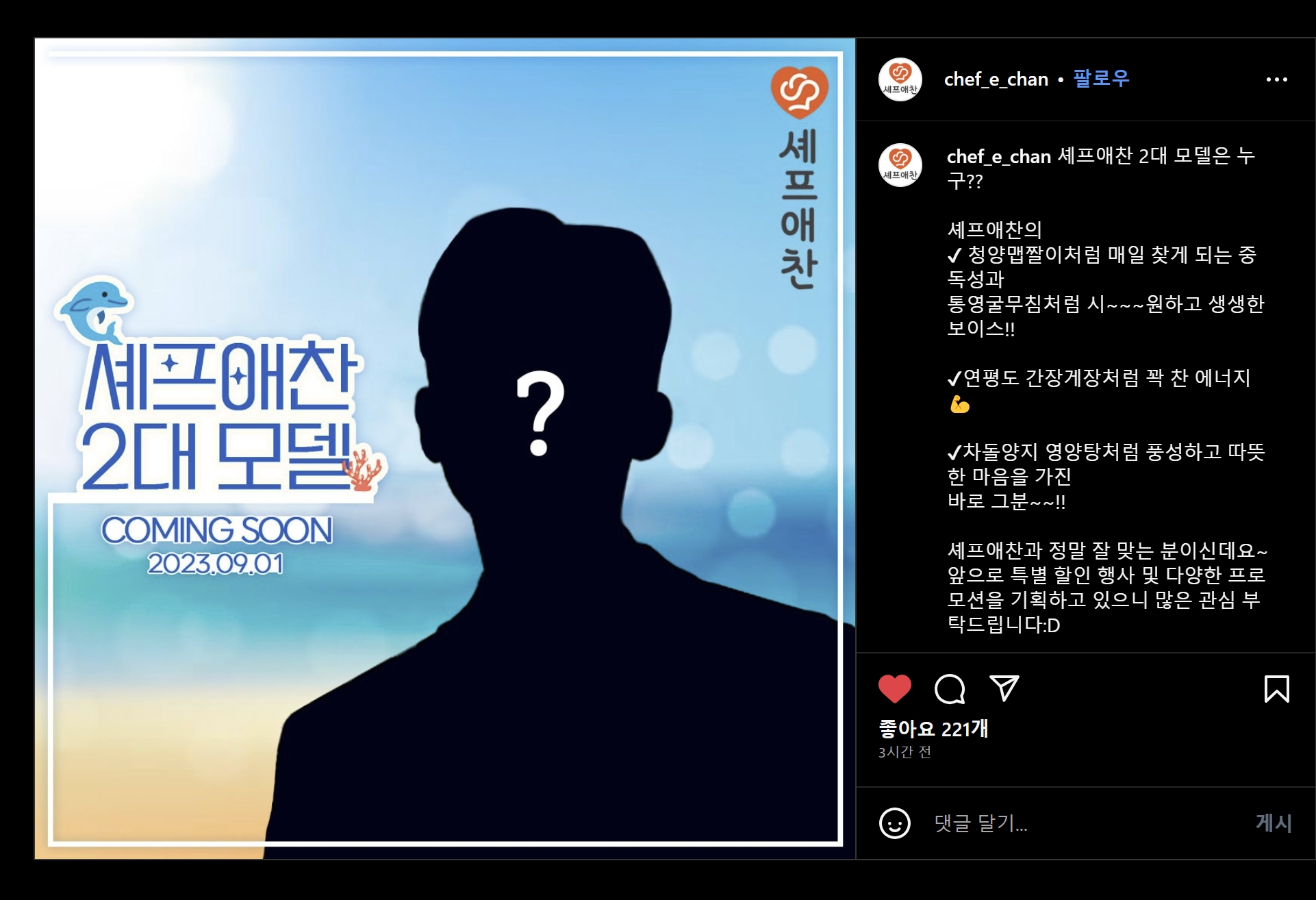 셰프애찬 2대 광고모델이 9월1일에 공개되는데요!